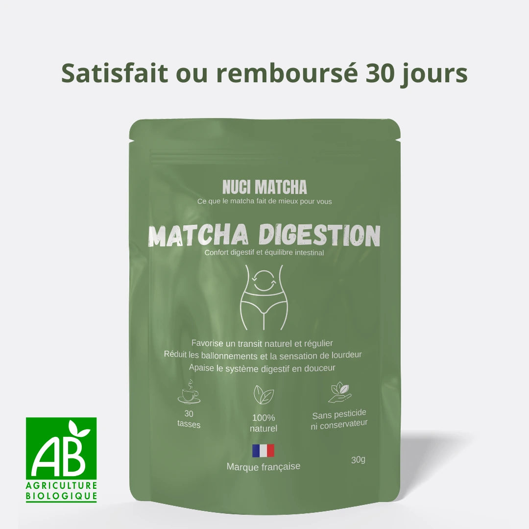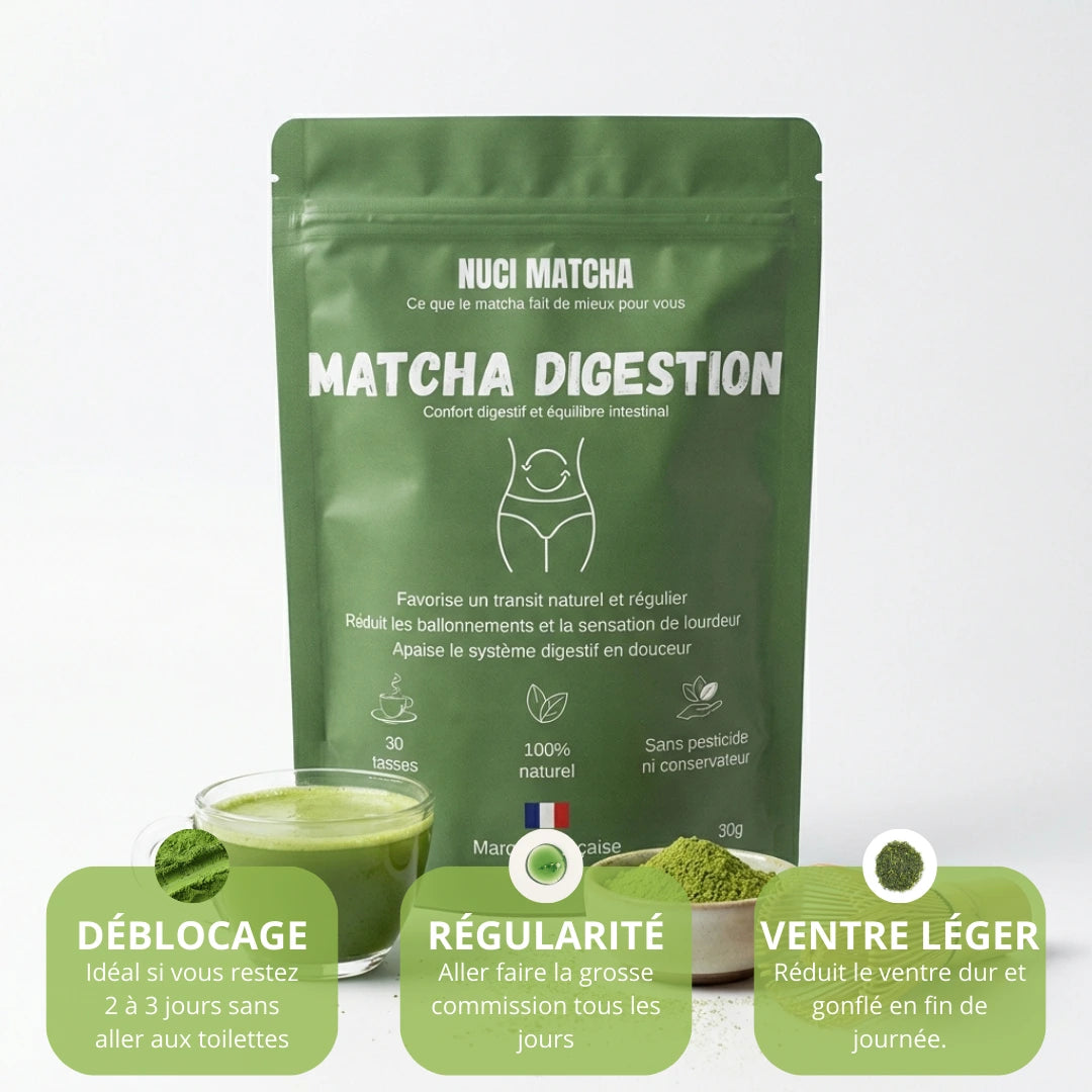 Ventre gonflé, transit irrégulier, sensation de lourdeur… Matcha Digestion soutient un transit naturel et aide à retrouver un ventre plus léger au quotidien, en douceur.